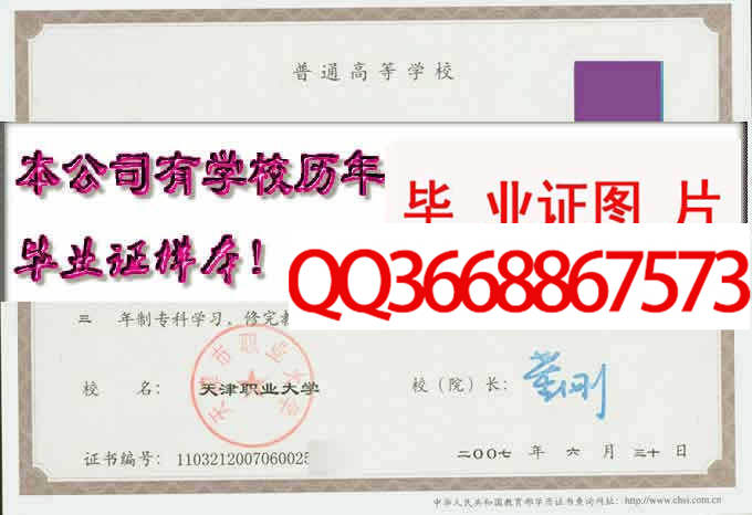 备注:本公司资料库存有天津职业大学的历年成人毕业证、自考毕业证、统招毕业证样本。拥有天津职业大学历任院(校)长。