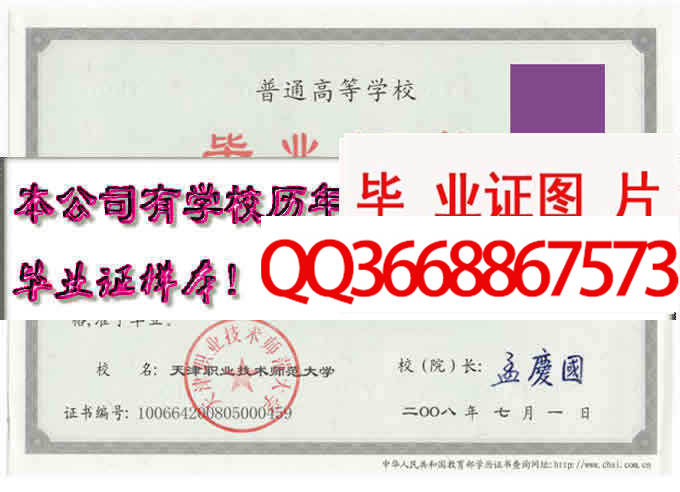 备注:本公司资料库存有天津职业技术师范大学的历年成人毕业证、自考毕业证、统招毕业证样本。拥有天津职业技术师范大学历任院(校)长。