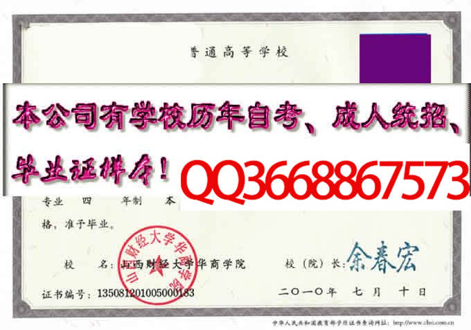 备注:本公司资料库存有山西财经大学华商学院的历年成人毕业证、自考毕业证、统招毕业证样本。拥有山西财经大学华商学院历任院(校)长。