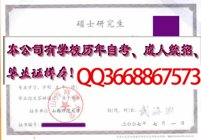 备注:本公司资料库存有山西师范大学的历年成人毕业证、自考毕业证、统招毕业证样本。拥有山西师范大学历任院(校)长。