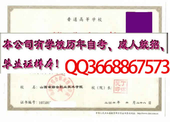 备注:本公司资料库存有历年硕士研究生、成人、自考、统招毕业证和学位证样本。