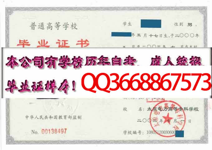 太原电力高等专科学校成绩单毕业证档案学位证样本