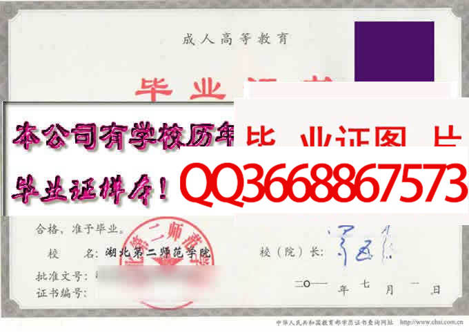 备注:本公司资料库存有湖北第二师范学院的历年学士学位证、成人毕业证、自考毕业证、统招毕业证样本。拥有湖北第二师范学院历任院(校)长。
