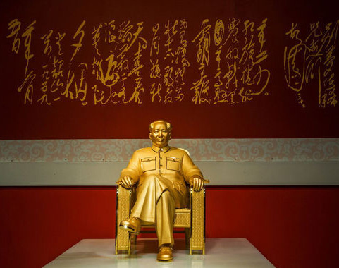 毛泽东倚坐的藤椅采用宫廷金细工的花丝工艺制作,此藤编绝技凸现出湖南家乡的民俗文化气息,底座采用汉白玉制作,长138厘米、宽128厘米、高100厘米,重约6.83吨,总造价达1亿元左右。金像一亮相就引起观众的极大关注。据悉,此尊毛泽东金像首展后,将安放在湖南韶山毛泽东纪念园。