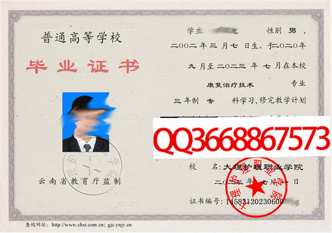 大理护理职业学院成绩单毕业证档案学位证样本